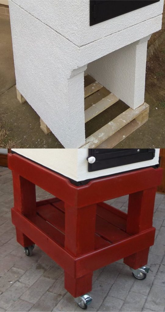 Ak ste sa rozhodli spraviť si vlastný podstavec (napr. z nových, či starých tehál), tento musí byť takisto postavený na stabilnom podklade s vonkajším rozmerom najmenej 60 x 75 cm. Jeho výška závisí od toho, kto bude pec používať. Zvyčajne odporúčame 70-80 cm. Podstavec môže byť plný alebo do tvaru U.