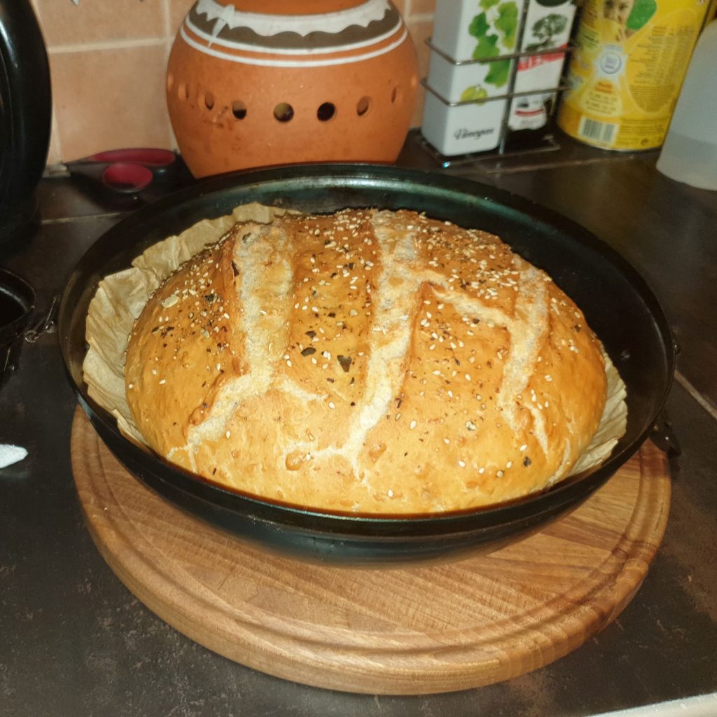 Po hodinke máme hotový okrúhly chrumkavý domáci chlieb, ktorého nenapodobniteľná vôňa veľmi rýchlo zaplní celý dom a prinúti členov rodiny netrpezlivo čakať na jeho vychladnutie.