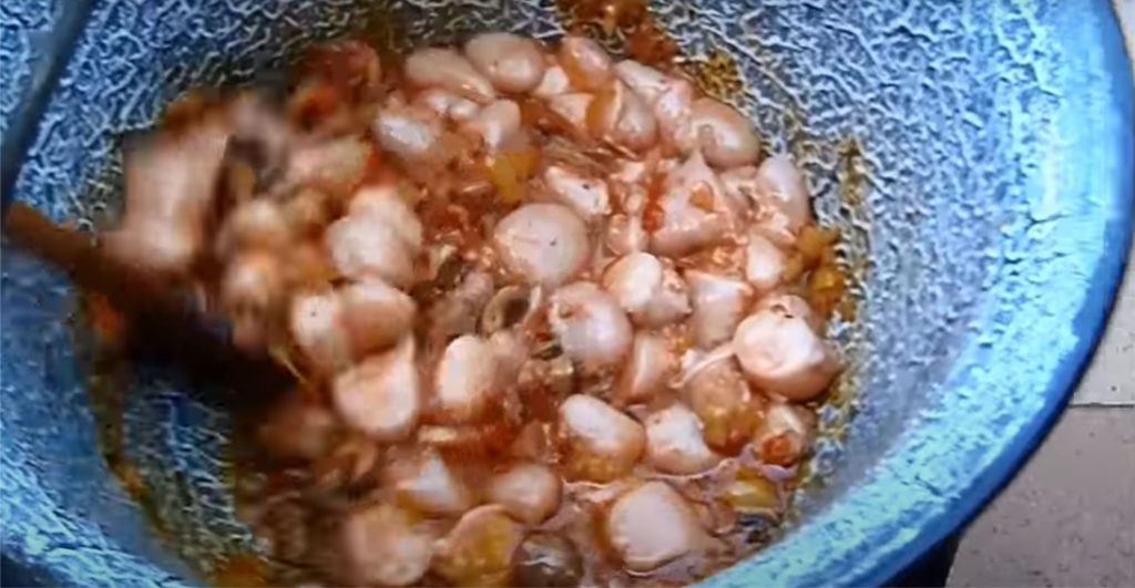 Po ďalších 10 minútach pridáme žľazy a dobre premiešame, aby sa chute spojili. Na strednom ohni varíme ďalej bez pokrievky, s občasným opatrným premiešaním. Dokoreníme podľa chuti a varíme ďalších 35 minút.